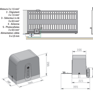 - Idéal pour les portails lourds, ce kit assure un mouvement fluide, une sécurité renforcée grâce à l’encodeur intégré, et un contrôle à distance via la domotique (Simply Connect). Facile à programmer, livré prêt à poser avec tous les accessoires, il offre confort, fiabilité et longévité.